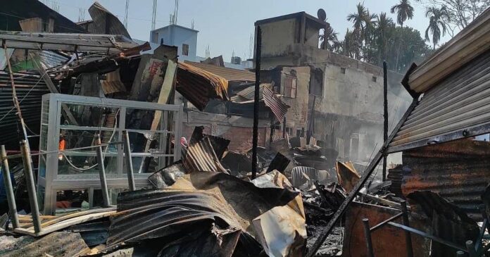 আগুনে বাবুল লাইব্রেরি, মদিনা সুইটস, বাংলাদেশ ফল ভান্ডার, অনুরাধা বিউটি পারলার, অশোক স্টুডিও, মুক্তা জুয়েলার্স ও লক্ষ্মী নারায়ণ জুয়েলার্স সম্পূর্ণ পুড়ে যায়।