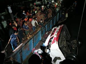 পরে বুধবার দিবাগত রাতে ফায়ার সার্ভিসের মিডিয়া সেল থেকে পাঠানো এক হোয়াটসঅ্যাপ বার্তায় ১৬ জনের লাশ উদ্ধারের তথ্য জানানো হয়। বার্তায় আরও বলা হয়, বাস থেকে উদ্ধার হওয়া লাশের মধ্যে দুইজন শিশু, ১০ জন নারী ও চারজন পুরুষ।